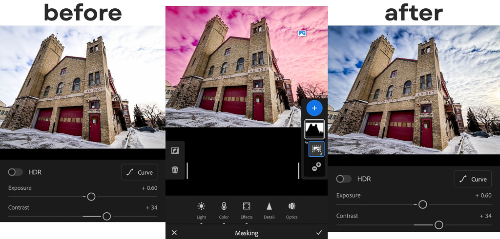 - selective adjustments (You can custom edit parts of the image without applying global adjustments to the whole image. For example, you can have it auto-detect the sky, then manually darken the sky without the rest of the image being affected. Game changer for creating dramatic skies!)