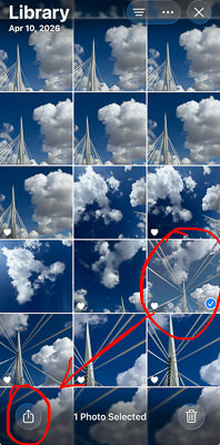From my Photos app on my iPhone, I select the photo I want to edit. I then send it to Lightroom by clicking the “send” icon as seen in the bottom left corner: